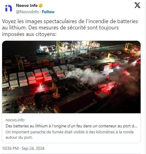 突發!加拿大蒙特利爾港載有鋰離子電池的集裝箱起火