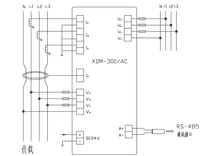 安裝監測模塊時,根據現場情況可以選用螺釘固定或導軌安裝。接線如下圖所示:
